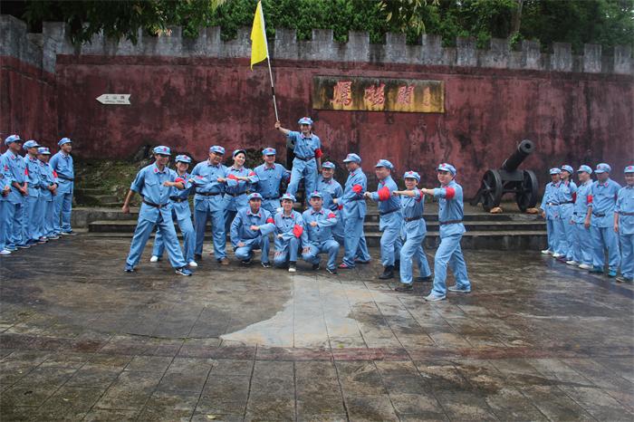 在红七军广场,我们开展了拓展培训比武。四个纵队分别选出自己的队长和政委,在规定的时间内确定队名、队徽、口号、队形并进行操练。经过一番谋划,雄鹰队、阳光队、飞鹰队、铁军队腾空出世。接下来便是登场亮相,首先上场的是铁军队,在一番队形变换后,喊出了“城投铁军,永夺冠军”的口号震撼大地。