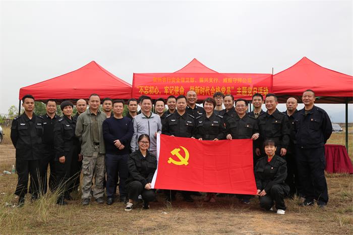 2019年10月26日,威振押运公司党小组与中国农业银行贺州分行安全保卫部党支部、农行八桂振兴支行党支部在贺州市军分区射击场联合开展“不忘初心、牢记使命,做新时代合作党员”主题党日活动,对金融武装守护押运安保业务知识和操作技能进行深入交流和探讨。集团党委委员、纪委书记吴泽莲,中国农业银行贺州分行副行长杨华龙,贺州市公安局八步分局领导,市广泽公司、威振押运公司相关领导参加了活动。
