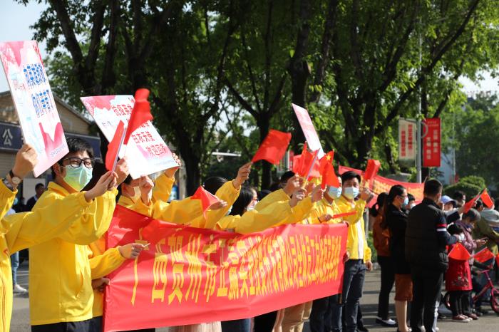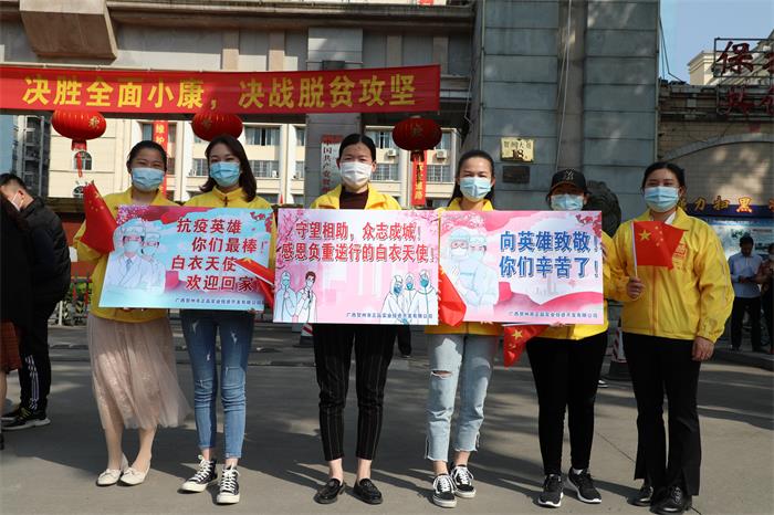 4月15日下午,贺州支援湖北医疗队33名队员圆满完成工作任务凯旋而归。贺州正赢实业公司党支部组织全体党员干部职工一行到贺州大道迎接英雄归来,开展“致敬英雄,担当作为”主题党日活动。