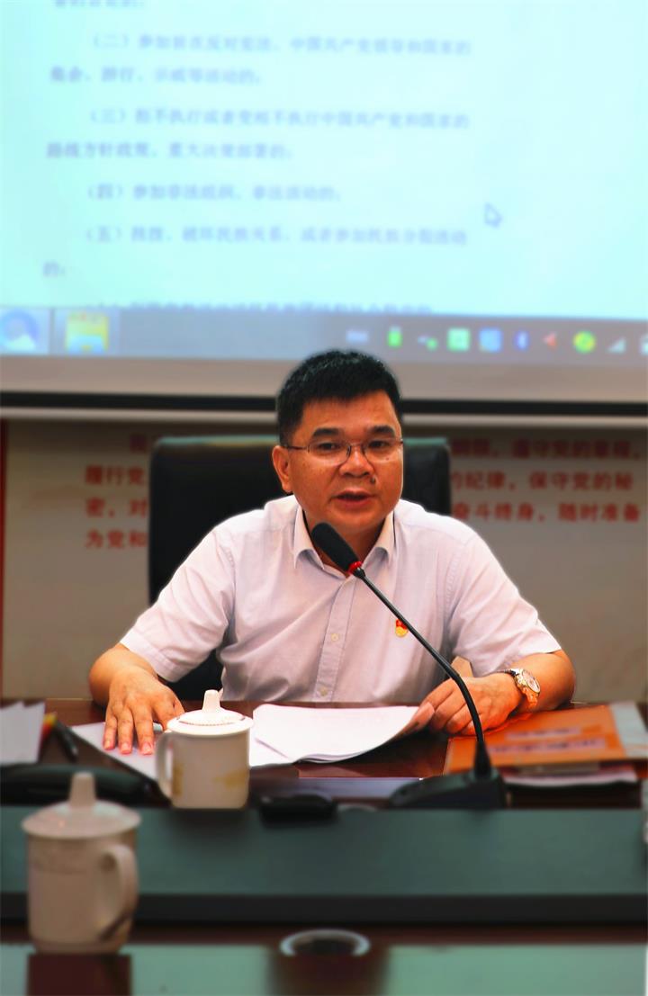 会上,柳国忠同志领学《公职人员政务处分法》;聂茂良同志通报典型案例:清远国土女局长的“家庭式腐败”。同时,观看视频《国之本在于家》《广西抗疫“最美家庭”宣传专辑》,并向全体党员、干部职工发放《家属助廉承诺书》。
