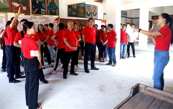 在黄士韬故居前,公司党支部副书记兰乾雄带领党员重温入党誓词。全体党员面向党旗,紧握右拳,庄严宣誓。