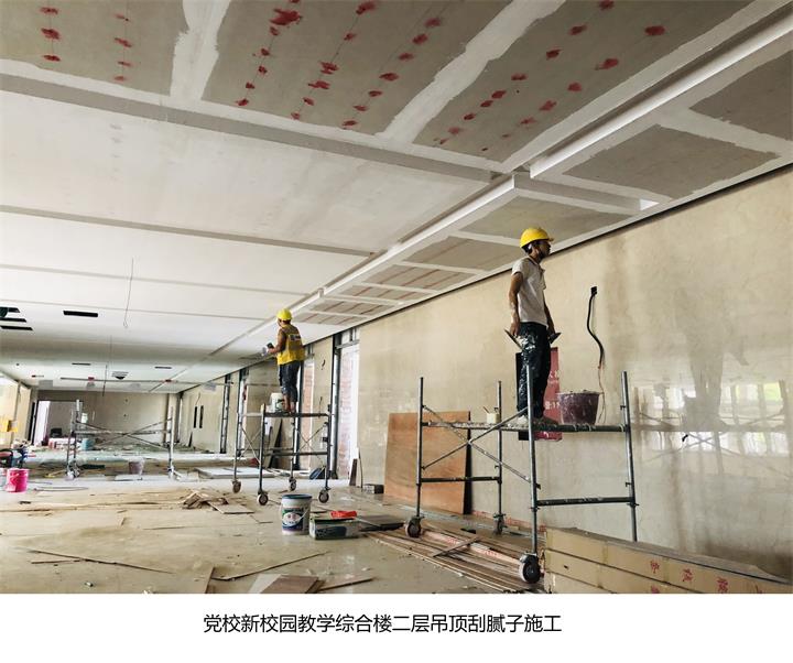 火热的天气,高温挑战下,市委党校新校园建设项目的工人们或装模、铺贴或焊接,全身心投入装饰装修工作。汗水不停地从他们额头、两颊往下滴,他们也仅仅是抬起手臂匆忙擦掉,继续埋头工作,确保工程如期交付。目前该项目完成总工程量的77%,正在进行室内装修和设备调试工作。