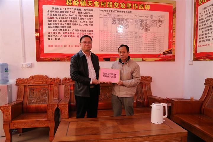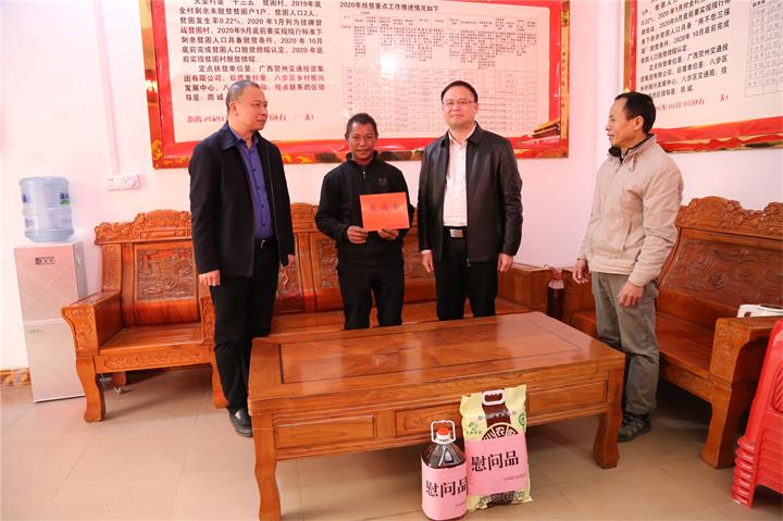 新春佳节将至,1月21日,城投集团党委书记、董事长黄俊,党委副书记、工会主席梁辉露一行走访慰问了帮扶联系村桂岭镇天堂村村委干部、驻村工作队员以及困难群众,向他们致以新年的问候和美好祝愿,为他们送去温暖和关怀。