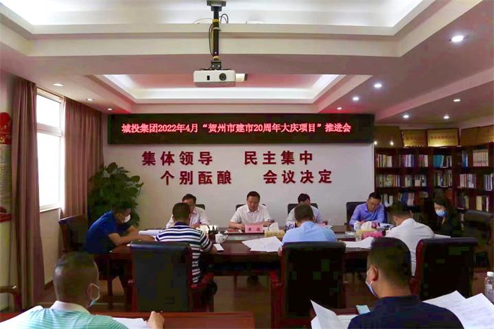 4月26日下午,城投集团党委书记、董事长黄俊主持召开“贺州市建市二十周年大庆项目”推进会,全面听取了贺州市老干部活动中心、市民活动中心停车场及基础设施配套工程、贺州市城区道路白改黑项目等11个市庆项目推进情况,详细了解存在的问题和下一步工作措施,并对市庆项目如何高效有序推进,按时按计划完成作进一步指导和指示。