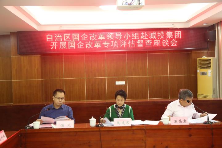 11月22日,自治区督查组组长、自治区国资委二级巡视员陶建君率队赴贺州城投集团开展国企改革专项评估督查并召开座谈会,市国资委党委副书记、副主任谢义及市国资委相关部门参与督查。城投集团党委书记、董事长黄俊向督查组做了汇报。