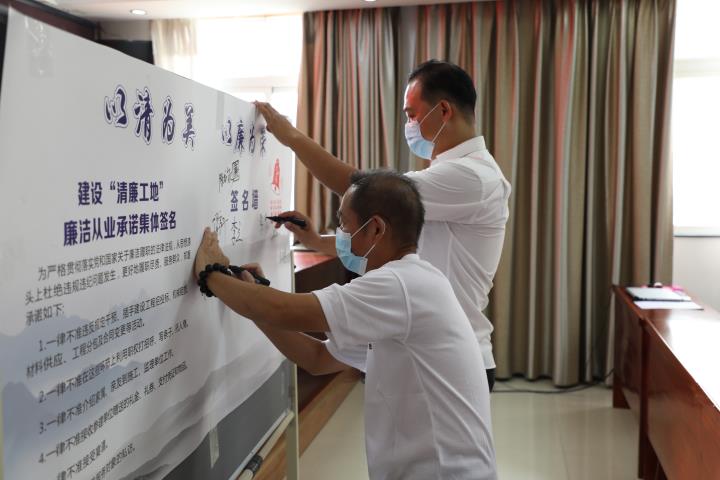 活动重温了入党誓词,聘请各项目监理单位人员为“廉政监督员”,并在清廉工地承诺墙上开展集体签名活动,立下高质量建设“清廉工地”的铮铮誓言。“廉政监督员”们围绕自身工作实际,谈履职,话清廉,对“清廉工地”建设建言献策,扎实推进党建领廉、文化助廉等廉政建设。