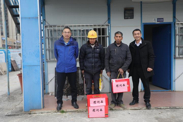 1月28日下午,贺州城投公司领导班子深入城投大厦等项目开展2022年“迎春送暖 稳岗留工”慰问活动,向春节期间留贺过年、坚守岗位的异地农民工送温暖、送祝福,引导更多异地农民工留贺安心过年。