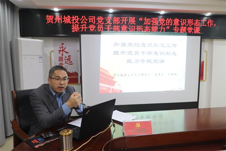 12月15日,城投公司党支部开展“加强党的意识形态工作,提升党员干部意识形态能力”主题教育党课活动。活动由公司党支部书记、董事长兰乾雄讲授党课,公司支部全体党员、发展对象、入党积极分子、全体团员等干部职工40余人参加活动。