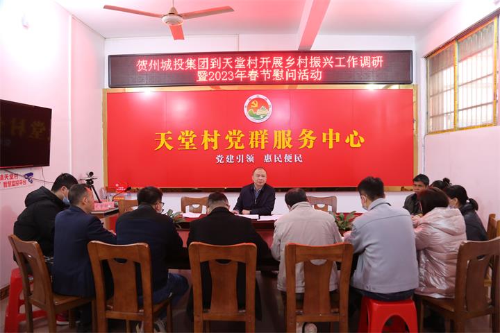 1月11日,贺州城投集团党委副书记、总经理常瑜,党委副书记、工会主席梁辉露分别率队前往帮扶联系点昭平县木格乡盘石村、八步区桂岭镇天堂村开展乡村振兴调研工作暨春节慰问活动。