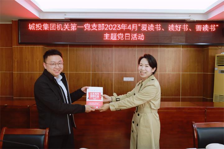 为深化学习型党支部建设,引导广大党员干部养成多读书,读好书,好读书的良好习惯,4月25日,城投集团机关第一党支部开展2023年4月“爱读书、读好书、善读书”主题党日活动,支部书记汤彩燕主持活动并讲话。支部党员、入党发展对象、入党申请人参加活动。