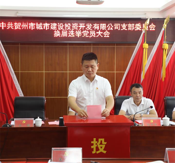 近日,贺州城投公司党支部换届选举大会顺利召开,公司党支部书记、董事长兰乾雄主持会议。支委班子、全体党员参加会议。