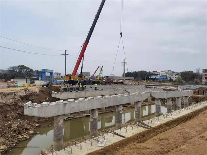 生态新城永康路育才河桥开展架梁施工2022-03-10