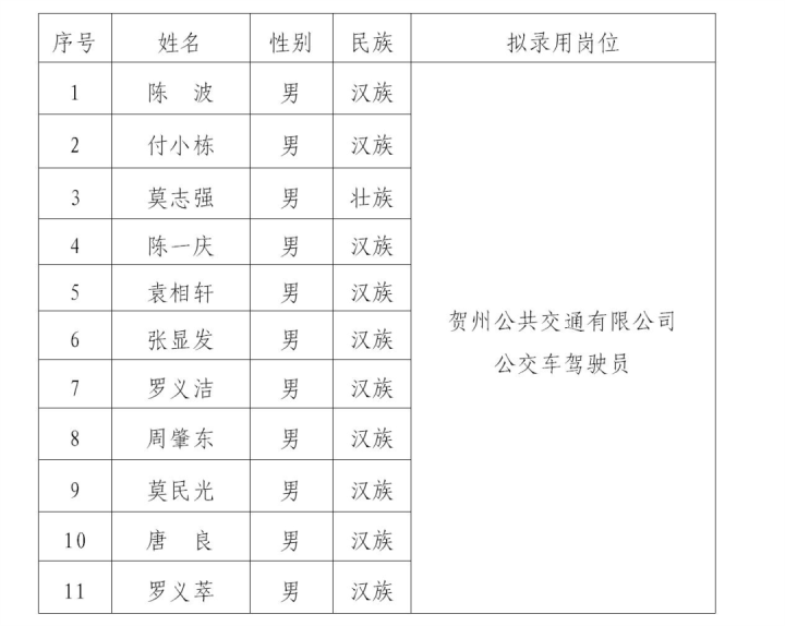贺州市城市运营投资管理有限公司2023年第一次公开招聘拟录用人员公示2023-06-30