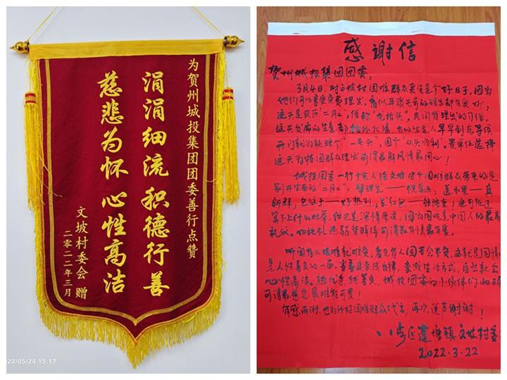 村委致谢赠锦旗 点赞城投集团团委志愿服务2022-05-24
