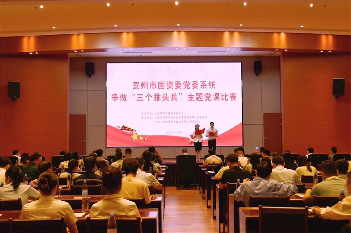 6月29日,贺州市国资委党委举办国资系统争做三个排头兵主题党课比赛。市国资委党委班子成员出席活动。城...